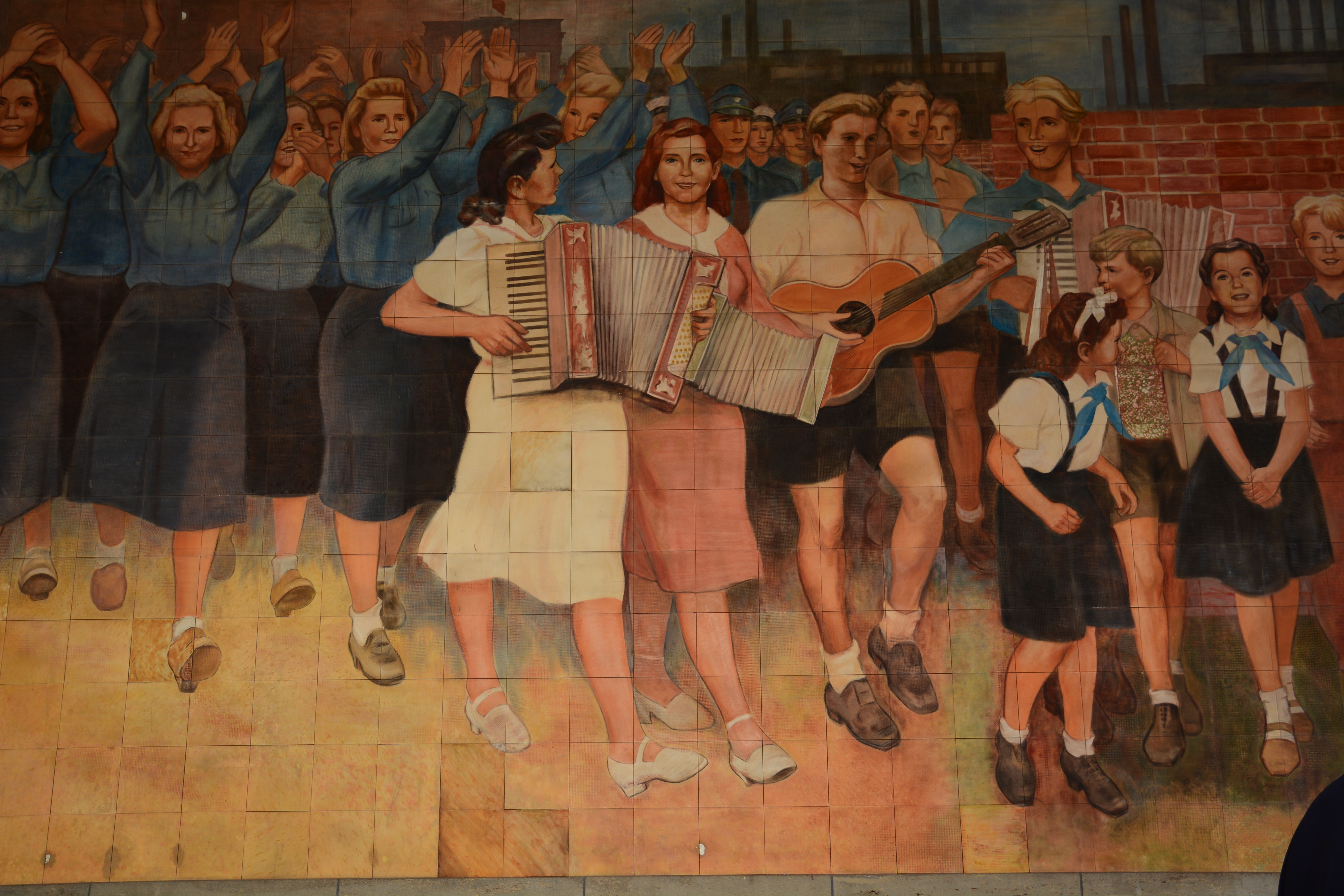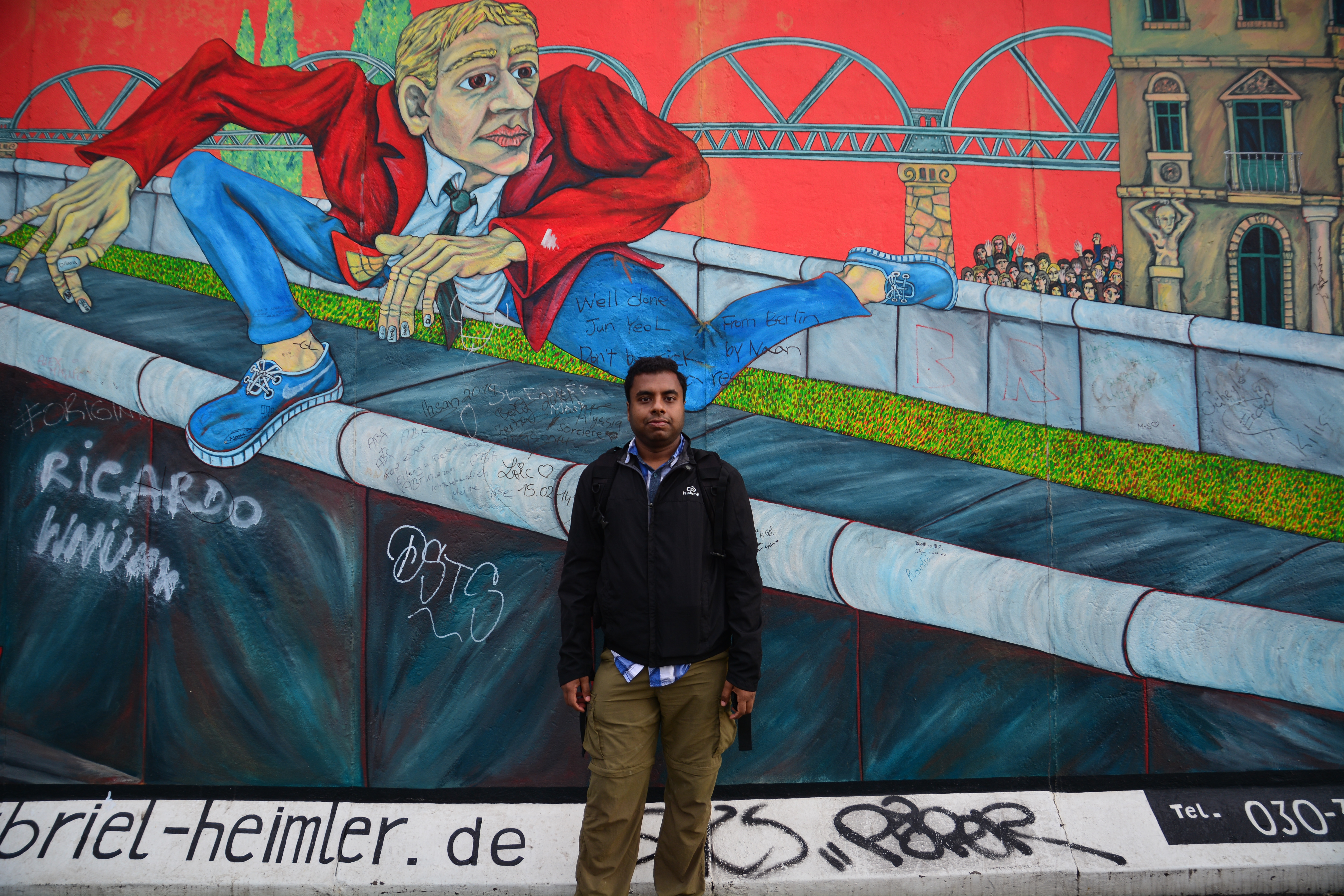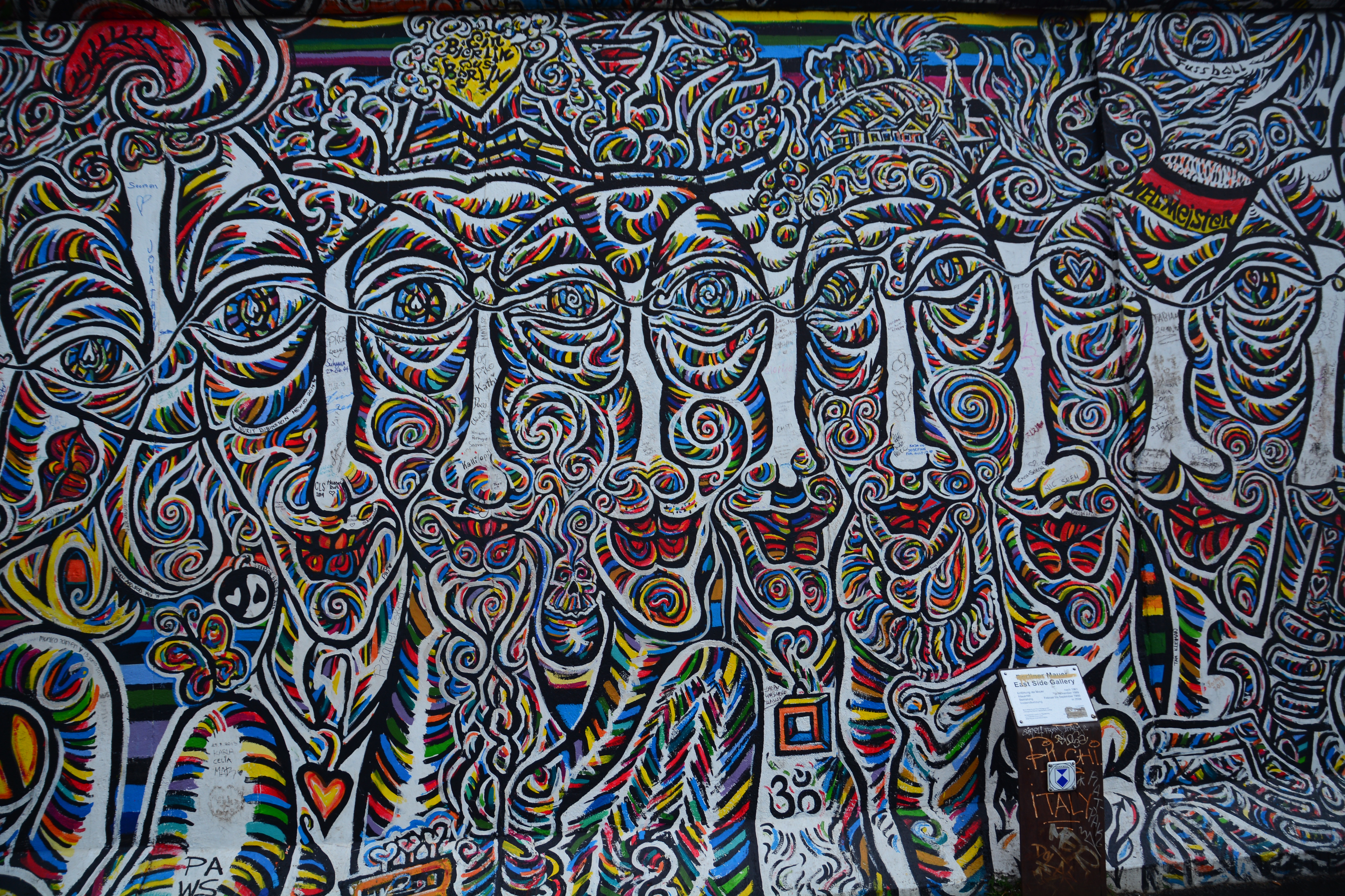 Finally we walked along Berlin wall memorial, one mile stretch of the remaining part of the wall along the east side of Ponte Rosso. It is like an open air art museum , with graffiti , painting all over.
