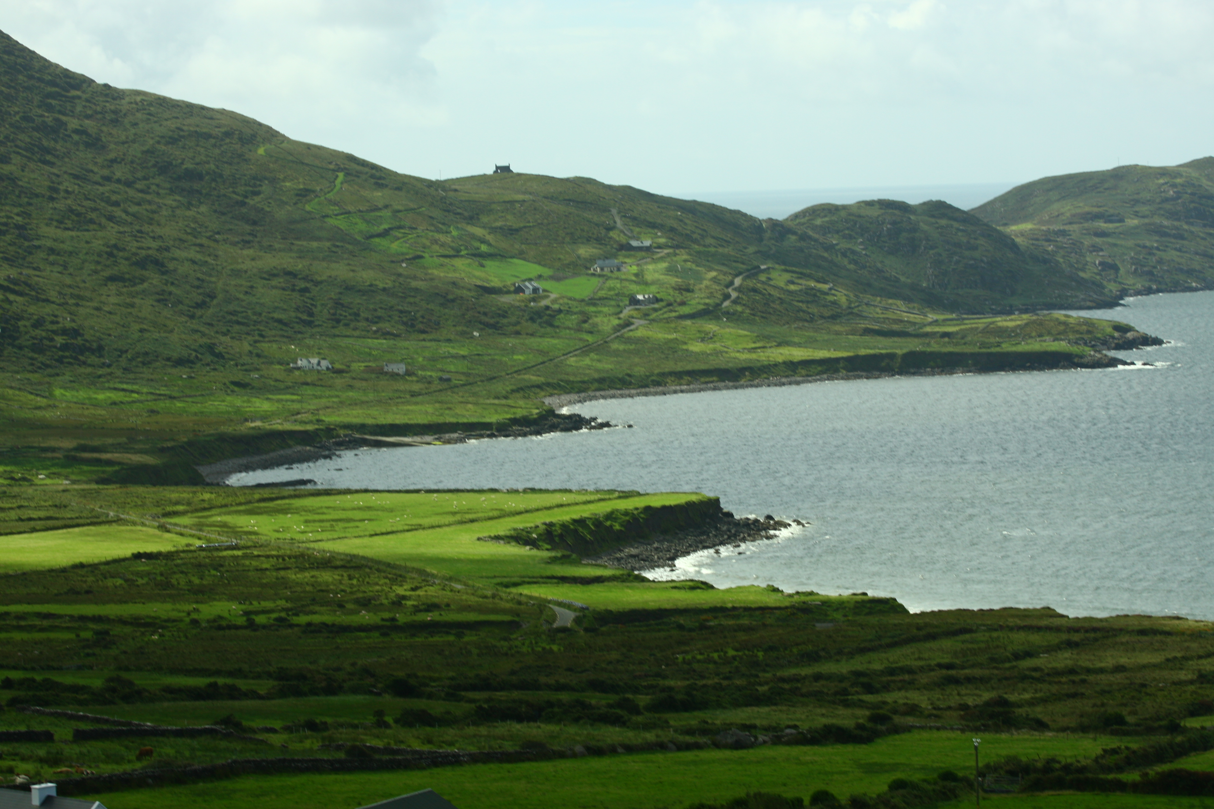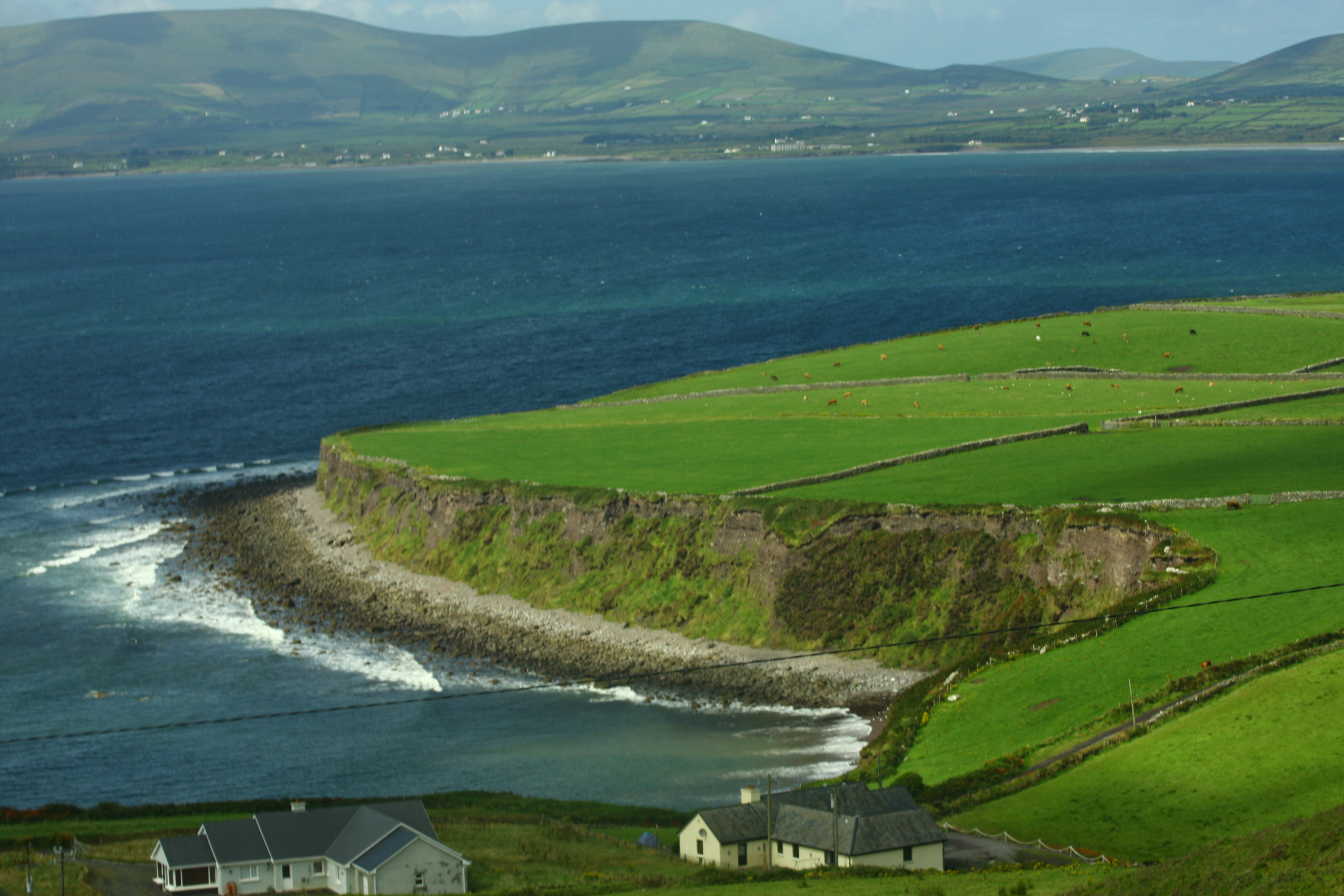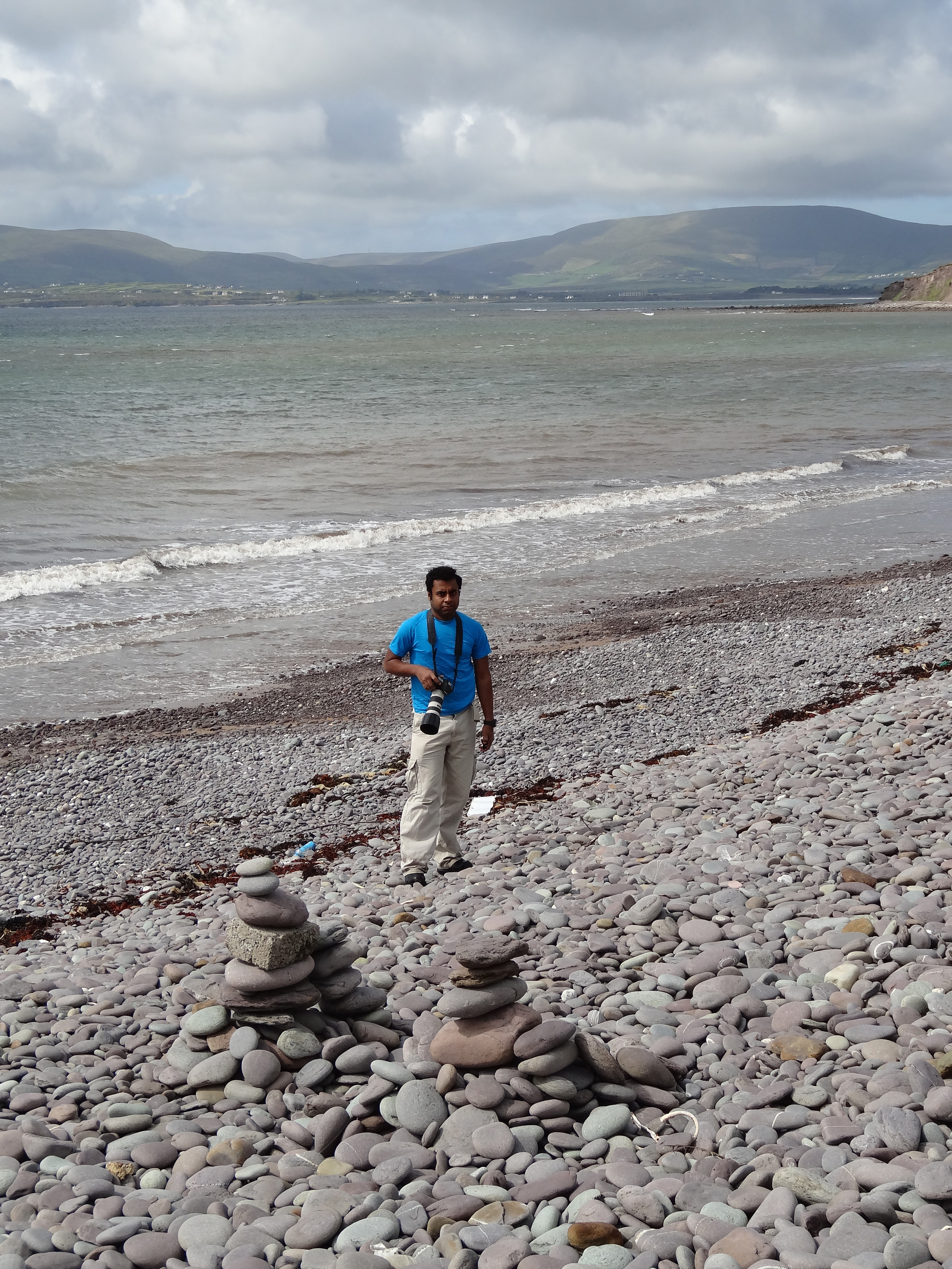 Here we saw a small replica of a typical Bog village set up as a museum. Various kinds of huts and the inside were decorated and set up as a typical Bog village hut would look like. There was a gift shop where a lot of Irish gift items were displayed. I bought a Decorative plate from there which shows various places of Ireland on it. We moved on our trip through Kerry with the fantabulous views of the Renard bay on our right. We saw the majestic Skellig and small skellig rocks far away at the sea. It looked beautiful (but then we were in for more adventures next day when we would visit them by boat and climb them!) Passing through the town of Cahersiveen, we reached a viewpoint just before entering the town of Waterville. Took many pictures of the sea and cliffs overhanging the sea at that point and resumed our journey back again. Our next stop