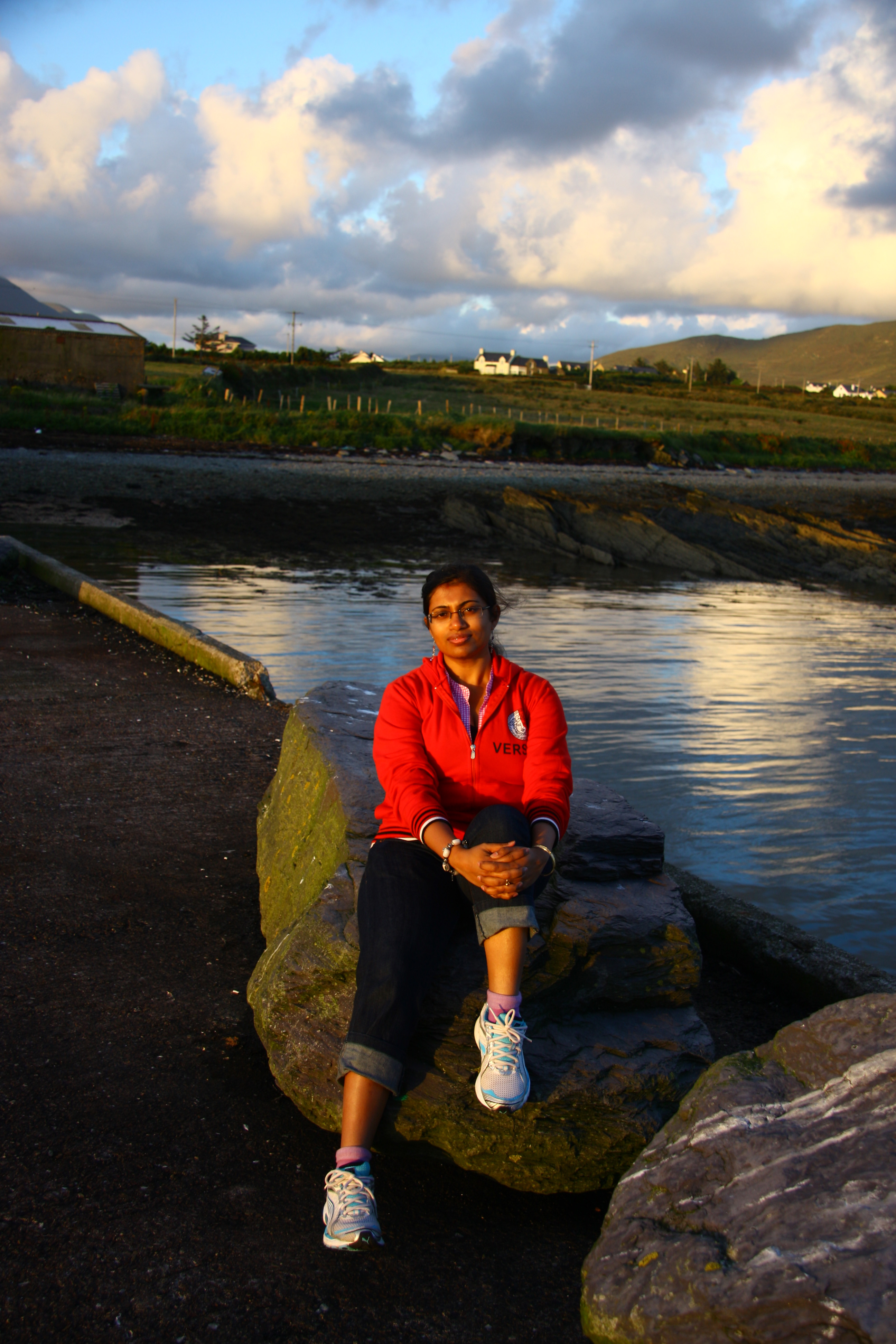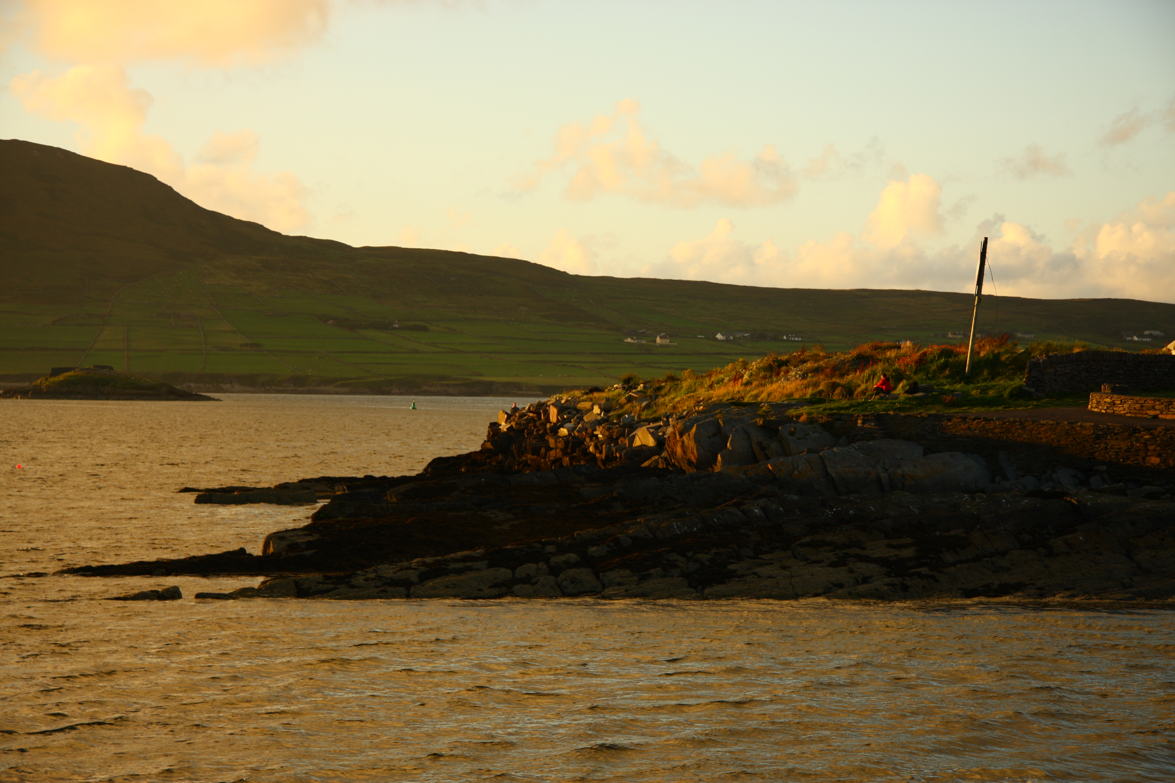 Finally he dropped us back to Killarney town center at around 5:30 pm. We took a taxi again from Mid kerry cabs for our journey to ‘Ferry view Hotel’ which was our next stay at Renard Point. It was a home converted B&B and was run by Jim and Mary Guirey. Our room was very cozy with a beautiful view of sea from the window. After changing we started towards the Renard Point which is around 10 mins walk from the hotel. We planned to take some pics of the beauty of Renard Point and the sunset before having our dinner at the only bar and restaurant there named ‘O’Neill’s, The Point’.The hotel was not difficult to find with proper signs given and moreover it as only one B&B located in that area. It had a amazing view surrounding it with vast colourful fields and the Renard Pier. The sea view was spectacular. We checked in and unpacked in our room. We could see the Valentia island from where we sat at the Renard point. It was so spectacular around us that given a chance would like to go back there again. We enjoyed the sunset with lots of photos taken by the professional photographer (who forgets about his pics);) 🙂