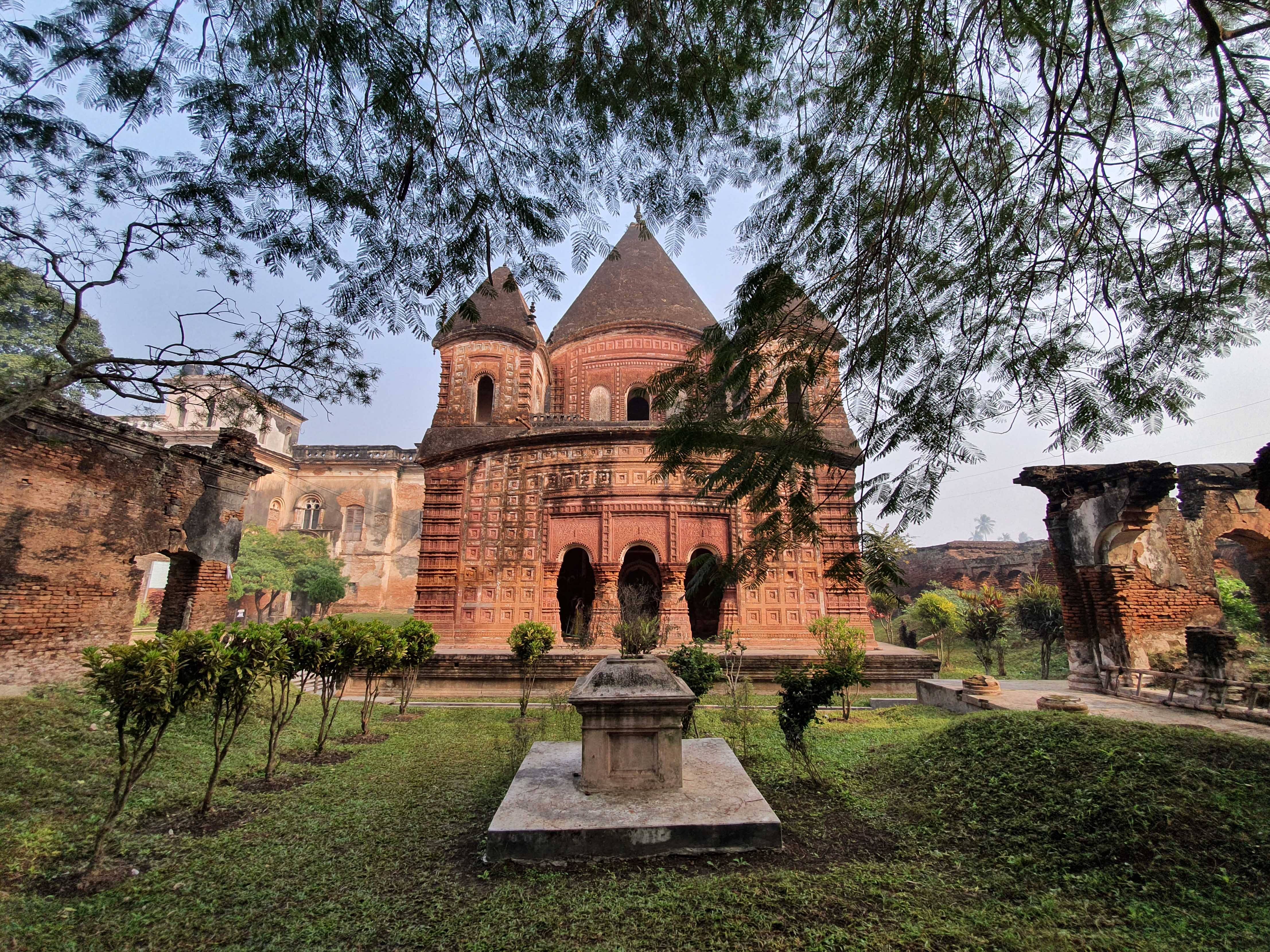 From Dhaka Gabtoli bus station our bus station we left at 11.30. The road goes through Tangail,ย Sirajganj,ย Natoreย to all the way to Rajshahi. We reached our hotel at Green City International late in the evening.ย Next day we took a local bus to Puthia . From main road Puthia village is accessible by rickshaw, this is the largest temple complex in Bangladesh. These temples were built by hindu Zamindars of Puthia . Notable temples are Govinda Temple, Shiva Temple and there are some others in dissipated state.